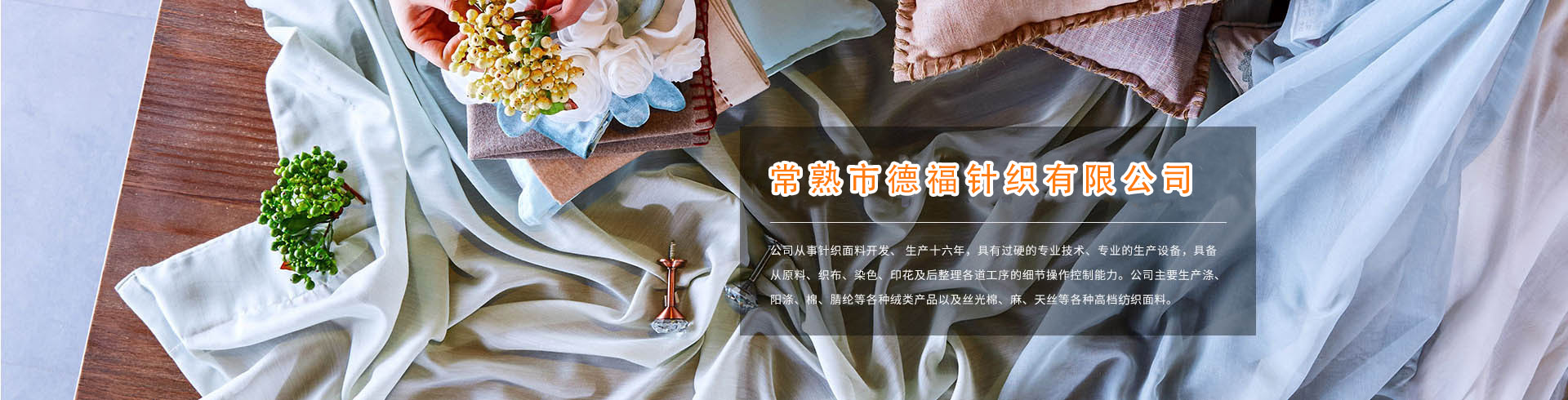 常熟市德福針織有限公司致力于服裝、家居面料的開發和應用,追求時尚簡約、舒適優雅及健康的生活理念,滿足人們對高品質生活的需求。